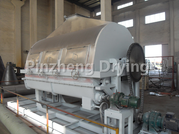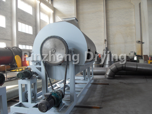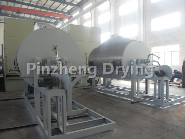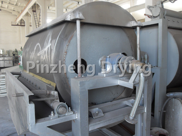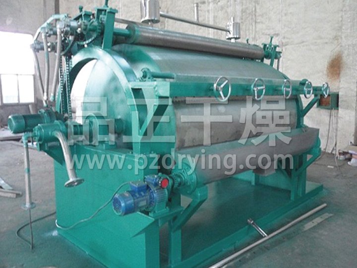 The drum dryer is a rotary continuous drying equipment with internal heating and conduction. A thick material film is adhered to the rotating drum through its lower material trough, and the heat is transferred to the inner wall of the drum through the pipe, and then to the outer wall of the drum, and then to the material film, so that the moisture in the material film can be evaporated and dehumidified, and the material containing moisture can be dried. The dried material is scraped off the drum by the scraper installed on the surface of the drum, and then to the screw conveyor placed under the scraper. The dry material is concentrated and packaged by the screw conveyor.
