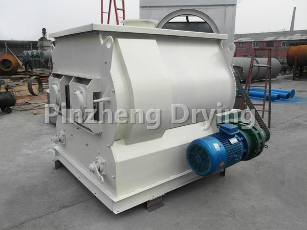 This series of mixers is characterized by strong and efficient mixing. The two mixers in the horizontal cylinder rotate in the opposite direction at the same speed. The specially arranged blades ensure the radial, circumferential and axial movement of materials, forming a compound cycle, and achieving uniform mixing in a very short time.